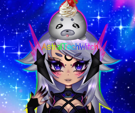 Hiii i'm AstralTechWitch but you can call me Techwitch or Astral! I'm a mecha witch from the Cosmic Void. I like to draw sturf and lub seals